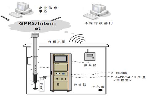 采樣探頭安裝于企業廢氣排口,排口被測廢氣被負壓抽泵抽取進入采樣探頭探桿(不加熱),經過陶瓷濾芯進入伴熱管線(伴熱溫度可設置),樣氣在伴熱管中繼續傳輸至預處理系統,在預處理系統經過二級過濾和分流后按照一定流量送至在線氣相色譜儀(GC-FID)。在線氣相色譜儀控制內置自動取樣平面十通閥和定量環系統取1mL的被測樣氣,借助載氣送入色譜柱分離和FID做定性、定量分析。分析結果通過工控機保存,并和排氣筒監測排放參數一起通過數采儀送至環保監控平臺。