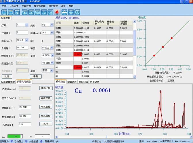 樣品測試:于原子吸收光譜儀波長324.7nm處,使用空氣-乙炔火焰,以水調零,測量試液的吸光度,減去隨同試料的空白試驗溶液的吸光度,從工作曲線上查出相應的銅濃度。