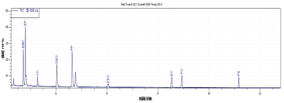 GC-MS6800測試鋰電池電解液中碳酸酯類有機物含量