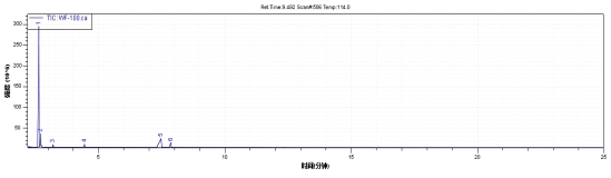 將樣品用乙酸乙酯稀釋合適倍數后,準確吸取1μl溶液進行測試,譜圖和檢測結果如下