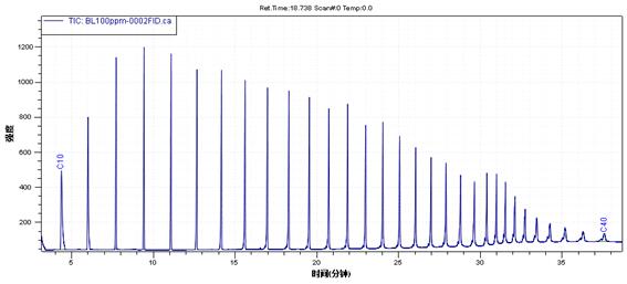 正癸烷到正四十烷(C10-C40)混標(biāo)濃度ρ=31000mg/mL (各正構(gòu)烷烴質(zhì)量濃度均為1000 mg/L),溶劑為正己烷(國(guó)家標(biāo)準(zhǔn)物質(zhì)網(wǎng));