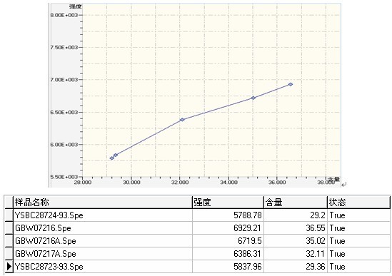 以下使用EDX 3600B型對螢石國標樣GBW07252實際測試的所得的譜圖,工作曲線等相關數據: