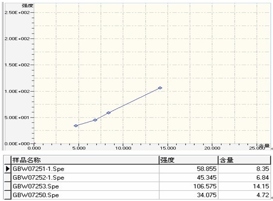 ② . 白云石國標樣Ca的工作曲線與相關數據