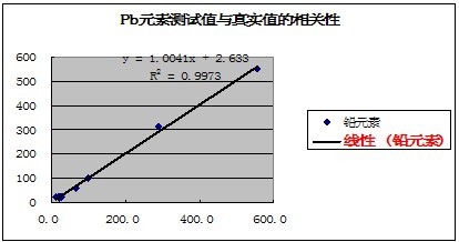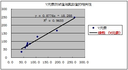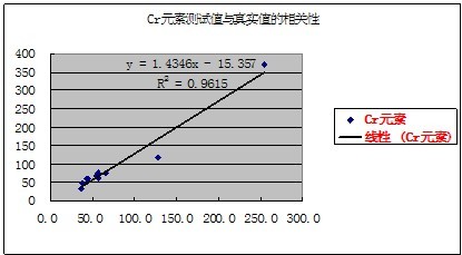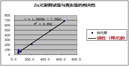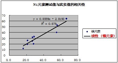 有關元素的測試值與真實值的相關性如下表示:
