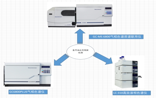 食用油中的農(nóng)藥殘留檢測,因其油品基質(zhì)復雜,樣品采用有機溶劑萃取,經(jīng)SPE固相萃取凈化后,分別用GC-MS 6800氣相色譜質(zhì)譜聯(lián)用儀、GC-6800plus氣相色譜儀和LC-310高效液相色譜儀檢測,該方法可用于食用油中有機磷類、有機氯類、擬除蟲菊酯類及氨基甲酸酯類等農(nóng)殘的測試。